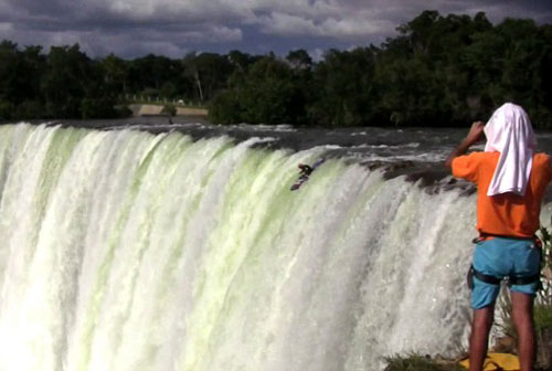 中新網3月24日電 據英國媒體23日報道,一位名叫佩德羅-奧麗維亞的巴西小伙,日前乘坐皮劃艇從落差達38.7米(127英尺)的賽爾托-貝洛(Salto Belo)瀑布“俯沖”了下來。整個墜落過程歷時2.95秒,在最后時刻,奧麗維亞的頭部以每小時70英里的速度撞向翻騰的水面。但他不僅大難不死,而且還如愿以償的打破了原來108英尺的“墜瀑布”世界紀錄。