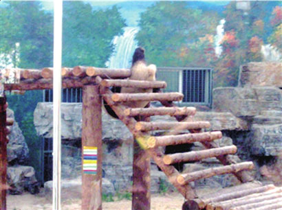 沒想到,正當游客們為“被困”熊貓著急時,那只熊貓自己蕩了幾下,試圖抓住木梯的架子做支撐。嘗試了幾次后,熊貓突然用力一起身,抓住木架的平臺,從木梯縫隙中抽出肥碩的身體,順著欄桿爬了下來。胡先生說,整個過程不到5分鐘,“很可愛,沒想到它圓嘟嘟的卻挺靈活”。成功“自救”的大熊貓似乎驚魂未定,下了木架后就坐到石頭后“安神”。游客見到此情景,不禁啞然失笑,為它鳴掌鼓勵。