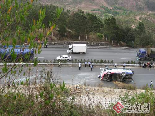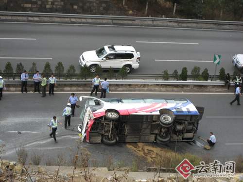 據了解,側翻的云L18477中型客車是大理交通運輸集團公司的,該車核載30人,事發時載客29人,是從下關駛往昆明的。事故原因正在進一步的調查當中。下午5時,封閉了4個多小時的安楚高速公路開始通車。