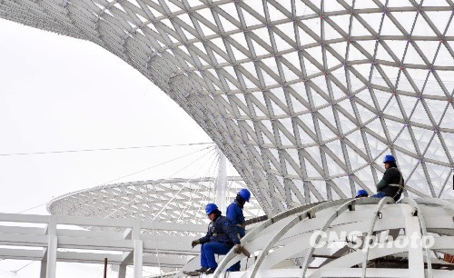 2010年1月22日,作為世博會“一軸四館”永久場館之一的世博軸工程正式竣工,這標志著世博建設邁入新階段。世博軸是由地上二層、地下二層組成的立體交通樞紐,長約1045米,寬約130米,總占地面積約13萬平方米,總建筑面積25.1萬平方米,地下空間建筑面積約19萬平方米,地上建筑面積約6.1萬平方米。世博軸工程是2010年上海世博會的主入口和中央人行立體交通樞紐,是本屆世博會的地標性建筑。世博軸工程的竣工標志著工程建設階段的完成,即將邁入運營準備階段。預計4月15日之前完成運營人員培訓、功能用房和商業裝修。并計劃4月15日-4月底進行試運營。中新社發 沈春琛 攝