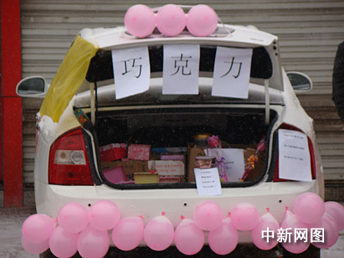 中新網(wǎng)2月14日電(高增平)14日上午,山西呂梁市區(qū)世紀(jì)廣場附近不少護(hù)花使者冒著小雪在擺放的各式各樣的玫瑰花。人們注意到,今天當(dāng)?shù)亟诸^許多過往車上也乘機(jī)擺放出巧克力招引著青年人方便為情侶送出禮物。