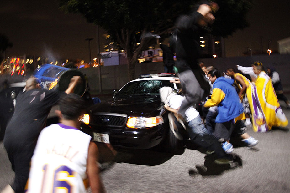 在洛杉磯湖人隊15日奪得本年度NBA總冠軍后,洛杉磯球迷涌上街頭歡慶勝利,但在慶祝過程中偶發暴力事件,警方逮捕了至少8人。