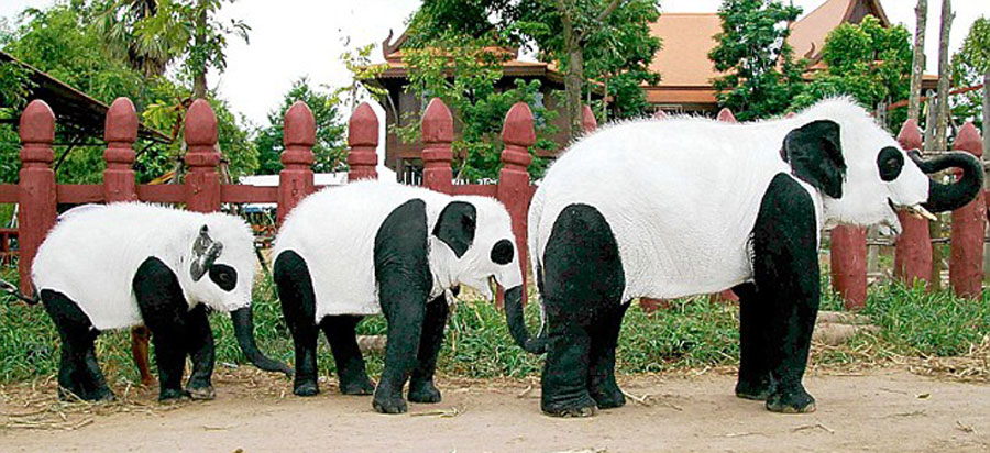 據英國媒體報道,近日,泰國因一只剛出生的熊貓陷入熱潮,泰國還準備向公眾征集熊貓幼崽的名字。幾只大象也“妝扮”成熊貓的模樣,借此吸引人們的關注。