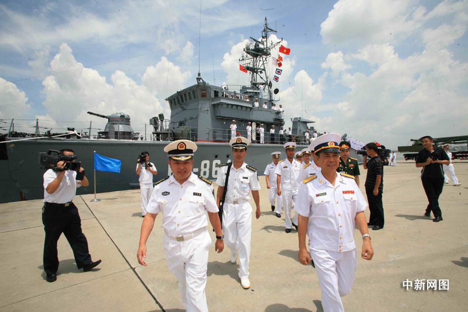 中新網6月28日電 6月24日至27日,越南海軍2艘掃雷艇靠泊廣東湛江港,對中國進行首次訪問。幾天來,雙方通過歡迎儀式、互相參觀艦艇、互設招待會、拜會、文藝交流等方式,實現了中國海軍與越南海軍在湛江的首次握手。(圖文韓海冰/牛志軍)