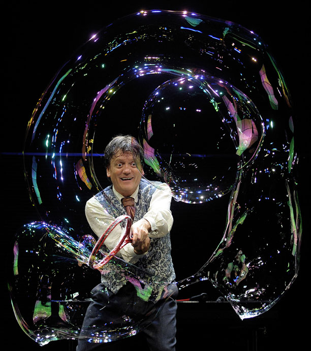 當地時間7月23日,西班牙國際肥皂泡藝術家皮蓬-玻爾在巴塞羅那進行肥皂泡藝術表演。