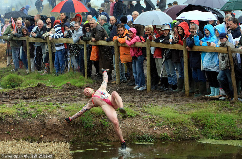 7月26日,硬漢挑戰賽在英國的伍爾弗漢普頓市舉行。這種以恐怖障礙著稱的比賽規則很簡單,勇士們通過規定的路程,誰先到達終點就是冠軍!參賽者需要在火焰中奔跑,穿越齊腰深的沼澤地,在帶刀片的鐵絲網下爬行,躍湖中,屏住呼吸穿越水下泥潭……