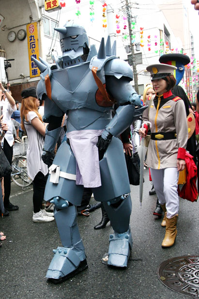 圖為一個扮成機器人的選手參加巡游表演。cosplay(角色扮演)指一種演繹角色的扮裝性質表演藝術行為,如今已成為風靡全世界的文化活動。