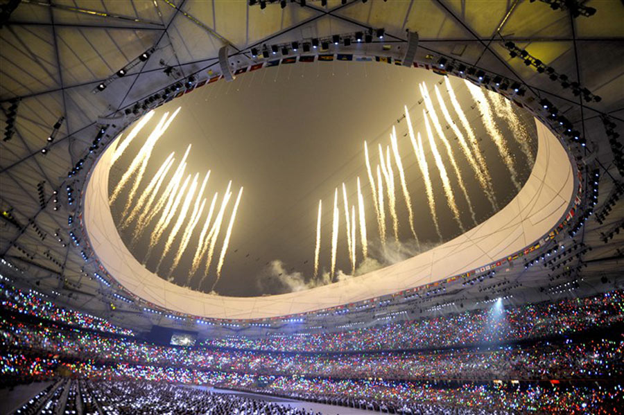 鳥巢夜未眠——從中軸線上的“腳印”煙花,到千缶齊鳴倒數,從夢幻五環驚艷“鳥巢”,到“夸父逐日”點燃祥云,整個北京奧運開幕式帶給觀眾一波又一波的感嘆。