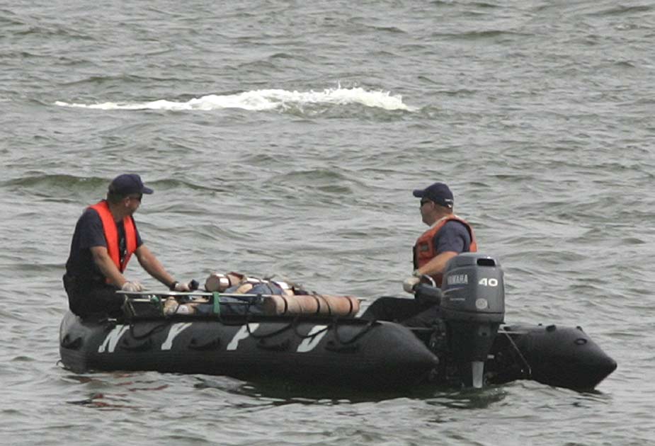 8月8日,紐約市曼哈頓西側(cè)的哈德遜河上空,一架觀光直升飛機和一架小型飛機相撞,兩飛機雙雙墜入河中。據(jù)稱觀光直升飛機上載有五名意大利游客和一名飛行員,而小型飛機上則有三人。圖為救援人員在現(xiàn)場打撈。