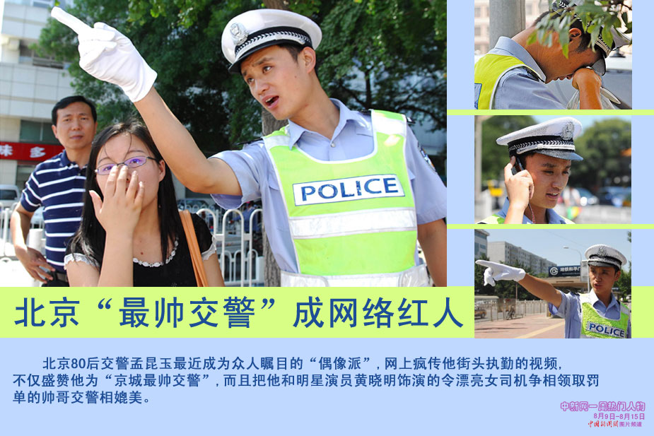 中新網本周熱點人物之最帥交警——1981年出生的孟昆玉因兢兢業業地在崗位上奉獻八年,公正執法、悉心為民服務。被網友捧為“北京最帥交警”。