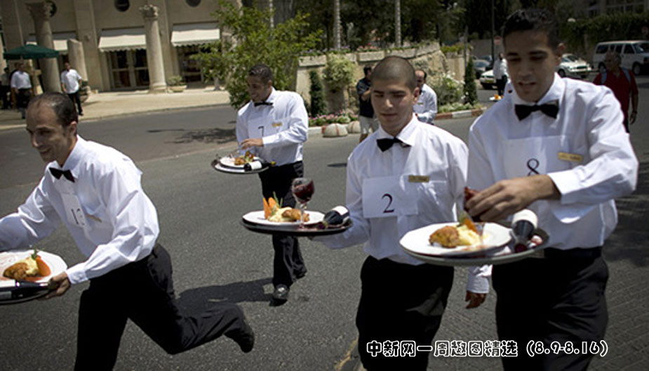 8月11日,大約30名以色列服務生端著盛有雞肉、紅酒的托盤參加在耶路撒冷舉行的服務生賽跑。點擊觀看詳細內容