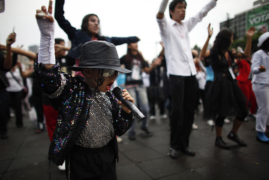 8月29日,逾萬名墨西哥人在墨西哥城廣場同時跳舞,用以紀念邁克爾·杰克遜第51個“生日”,同時也試圖打破同時跳舞人數最的吉尼斯世界紀錄。圖片來源:中國新聞網