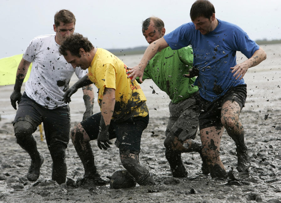 當地時間8月30日,德國北部海邊小鎮Brunsbuettel的泥灘上進行一場別開生面的泥地足球賽。男女“球員”混合在一起,泥地中盡情撒野,享受著不一樣的樂趣。
