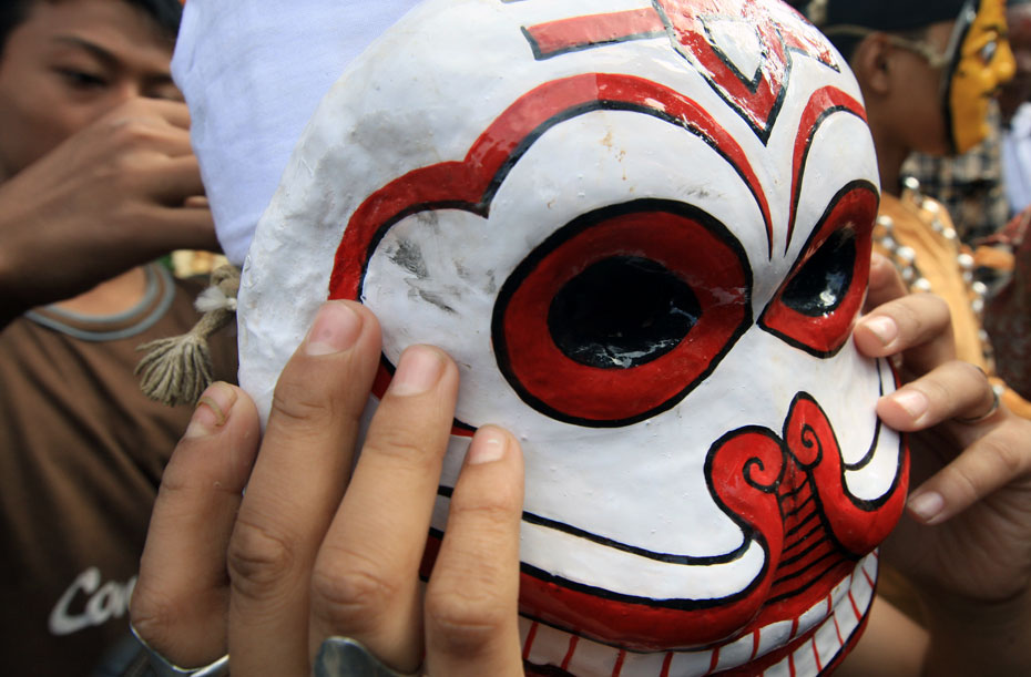 圖為節日當天人們戴上傳統的尼泊爾面具載歌載舞。
