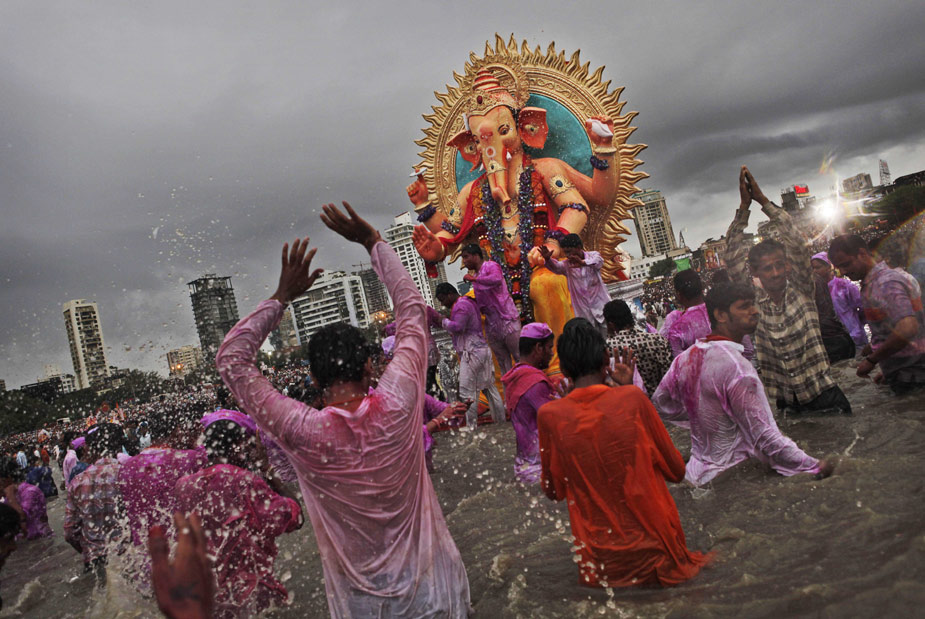 9月3日,印度各地的印度教教徒舉行盛大的儀式慶祝象頭神節。象頭神節是印度重要的宗教節日之一。在為期10天的節日中,印度教教徒將象頭神的神像請回家中,寓意引入財富、智慧和吉祥。