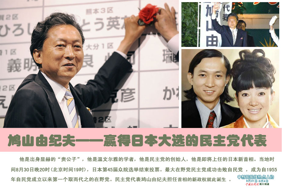 中新網(wǎng)本周熱點(diǎn)人物之——鳩山由紀(jì)夫 他是出身顯赫的“貴公子”,他是溫文爾雅的學(xué)者,他是民主黨的創(chuàng)始人,他是即將上任的日本新首相。 當(dāng)?shù)貢r(shí)間8月30日晚20時(shí)(北京時(shí)間19時(shí)),日本第45屆眾院選舉結(jié)束投票。最大在野黨民主黨成功擊敗自民黨 ,成為自1955年自民黨成立以來第一個(gè)取而代之的在野黨。民主黨代表鳩山由紀(jì)夫擔(dān)任首相的新政權(quán)就此誕生 。來源:中國新聞網(wǎng)