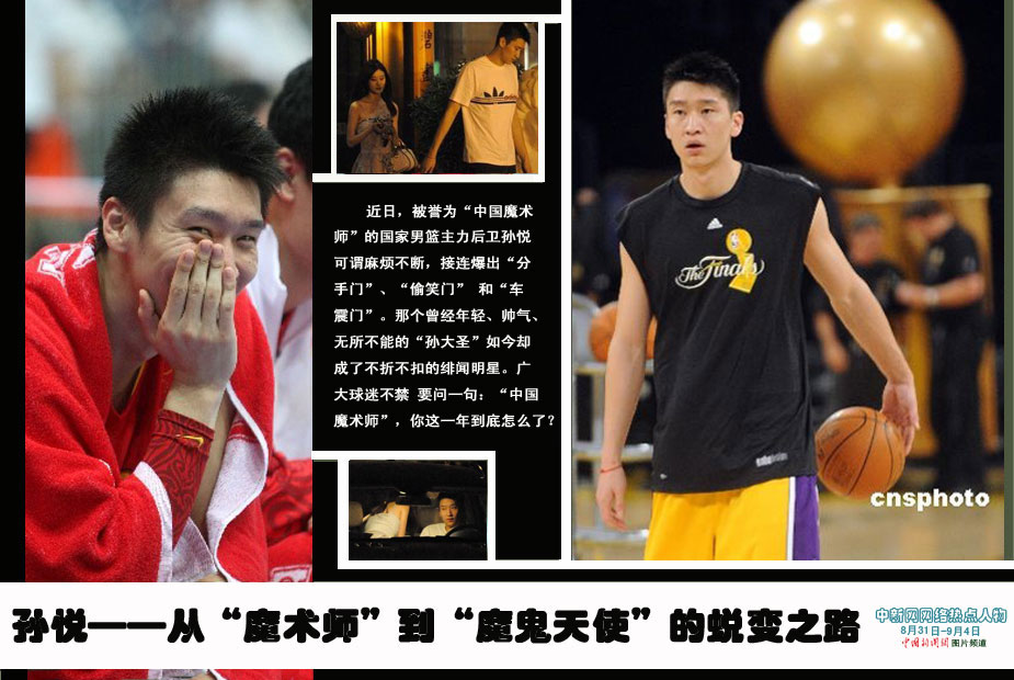 中新網本周熱點人物之——孫悅 近日,被譽為“中國魔術師”的國家男籃主力后衛孫悅可謂麻煩不斷,接連爆出“分手門”、“偷笑門” 和“車震門”。那個曾經年輕、帥氣、無所不能的“孫大圣”如今卻成了不折不扣的緋聞明星。廣大球迷不禁 要問一句:“中國魔術師”,你這一年到底怎么了?圖片來源:中國新聞網