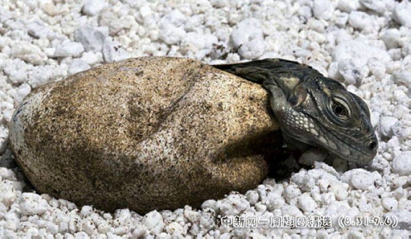 9月1日,美國圣迭戈動物園兩只小藍鬣蜥破殼而出。藍鬣蜥是世界最瀕危的物種之一。圖片來源:中國新聞網