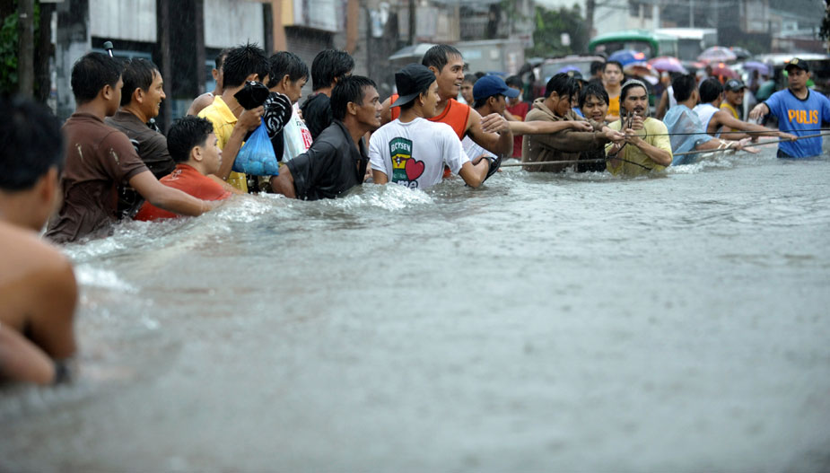 熱帶風暴“凱薩娜”26日吹襲菲律賓北部呂宋島,首都大馬尼拉地區出現逾42年來最嚴重水災,幾乎變成澤國。圖片來源:中國新聞網