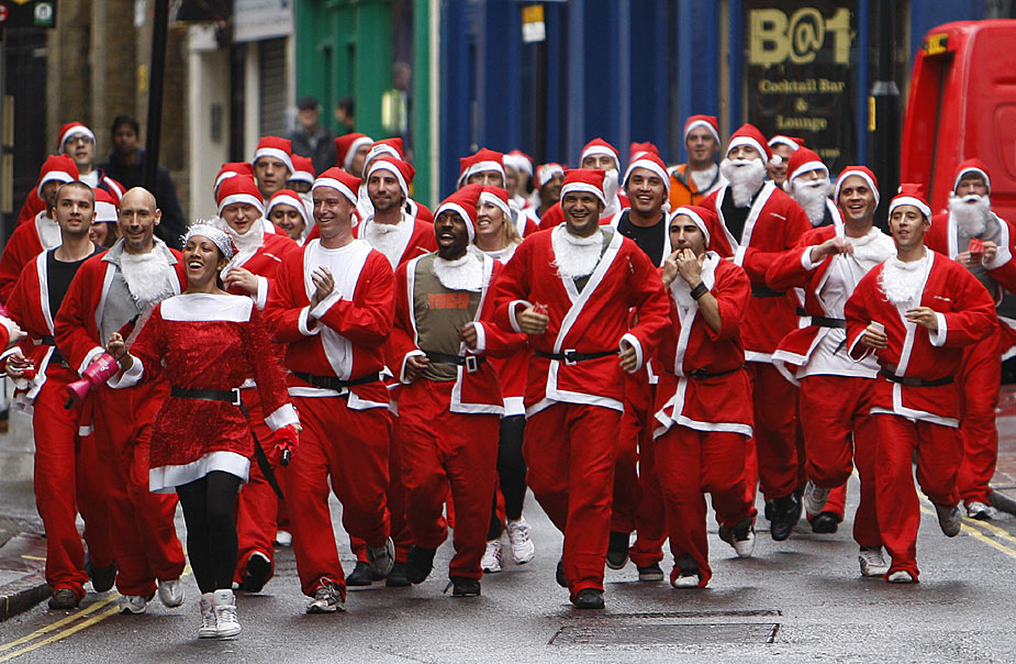10月6日,英國(guó)倫敦市中心100多位圣誕老人為籌集乳腺癌護(hù)理善款而參加歡樂(lè)跑活動(dòng)。圖片來(lái)源:中國(guó)新聞網(wǎng)