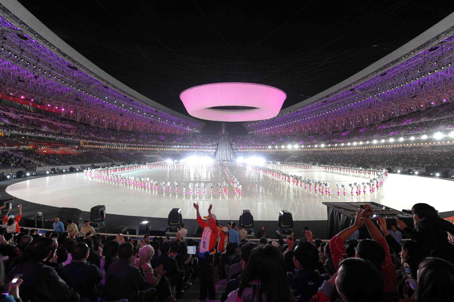 十月十六日晚,中華人民共和國第十一屆運動會在山東濟南奧體中心隆重開幕。中新社發 陳文 攝