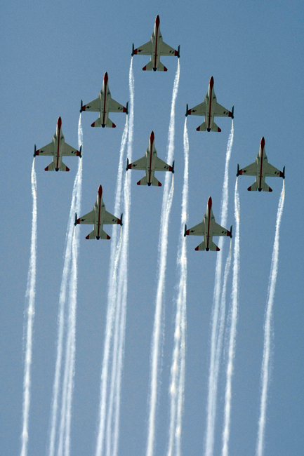 10月20日,韓國黑鷹特技飛行表演隊在2009首爾國際航空航天與國防展上進行精彩的特技飛行表演。