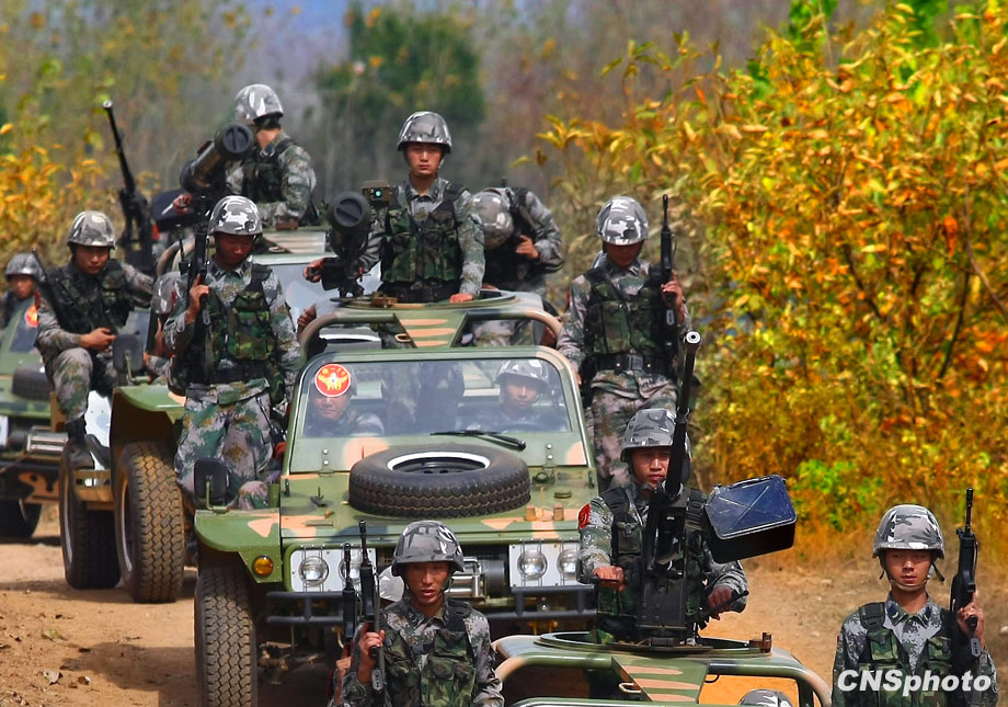 解放軍濟南軍區(qū)“前鋒-2009A”軍事演習,將于10月21日在某合同戰(zhàn)術訓練基地舉行,圖為即將參加演習的空降兵部隊10月20日在進行針對性訓練。這次演習主要是由兵力兵器數(shù)量規(guī)模向信息火力效能聚優(yōu)轉變、指揮的重心由主攻方向上的重點突破向作戰(zhàn)關節(jié)要害的體系毀癱轉變、火力的運用由概略粗放決策向科學精細籌劃轉變、協(xié)同的重點由地面步坦行動向陸空火力協(xié)調(diào)轉變、行動的控制由時間位置推進量向效果態(tài)勢達成度轉變、作戰(zhàn)的目的由殲敵奪地向控要制權轉變。 中新社發(fā) 宋吉河 攝