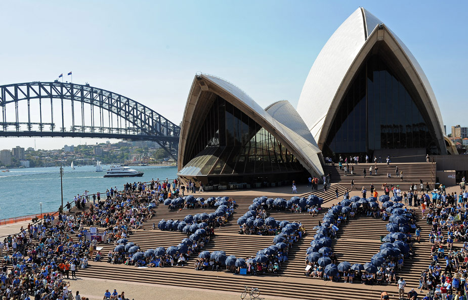 2009年10月24日,當日是350全球應對氣候變化行動日,世界各地的民眾紛紛用自己的方式來表示對全球氣候變化的關注和擔憂。圖為澳大利亞民眾組織活動。