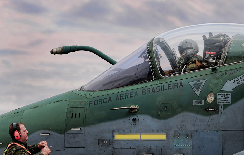 當地時間10月26日,美國、法國、阿根廷、巴西、智利等國的空軍在智利首都圣地亞哥以北的安托法加斯塔舉行了一場聯合空中軍事演習。通過模擬維和任務,交流作戰技術和經驗。圖為巴西空軍的戰機。