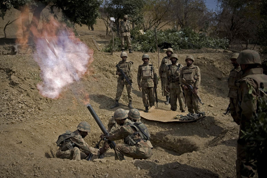 10月29日,巴基斯坦軍方稱在過去24小時內,巴安全部隊在南瓦濟里斯坦部落地區繼續向塔利班“老巢”挺進,共打死11名塔利班武裝分子。圖為巴基斯坦安全部隊向塔利班“老巢”開火。