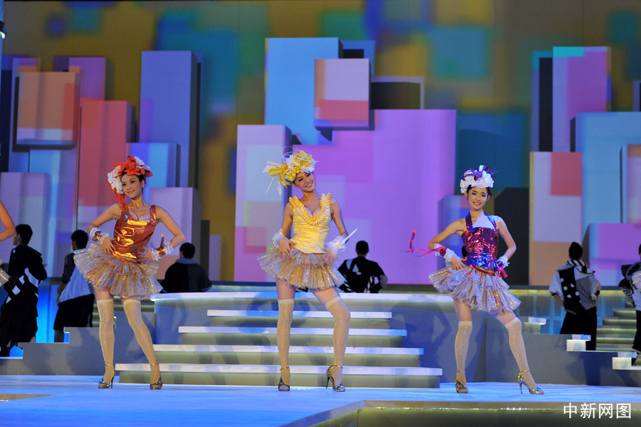 10月31日晚,“2009中華小姐環球大賽”總決賽上,12名入圍總決賽的佳麗身著迷你裙大秀性感爵士舞。中新網記者 金碩 攝