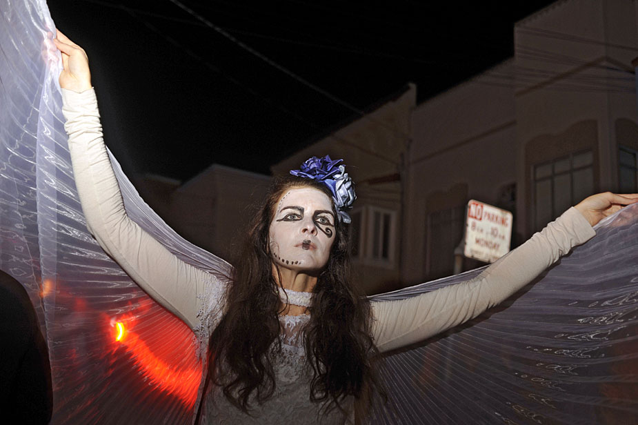 11月2日,美國舊金山居民扮成鬼怪模樣慶祝“亡靈節”。“亡靈節”是拉美地區的傳統節日,類似于中國的清明節。來源:中國新聞網