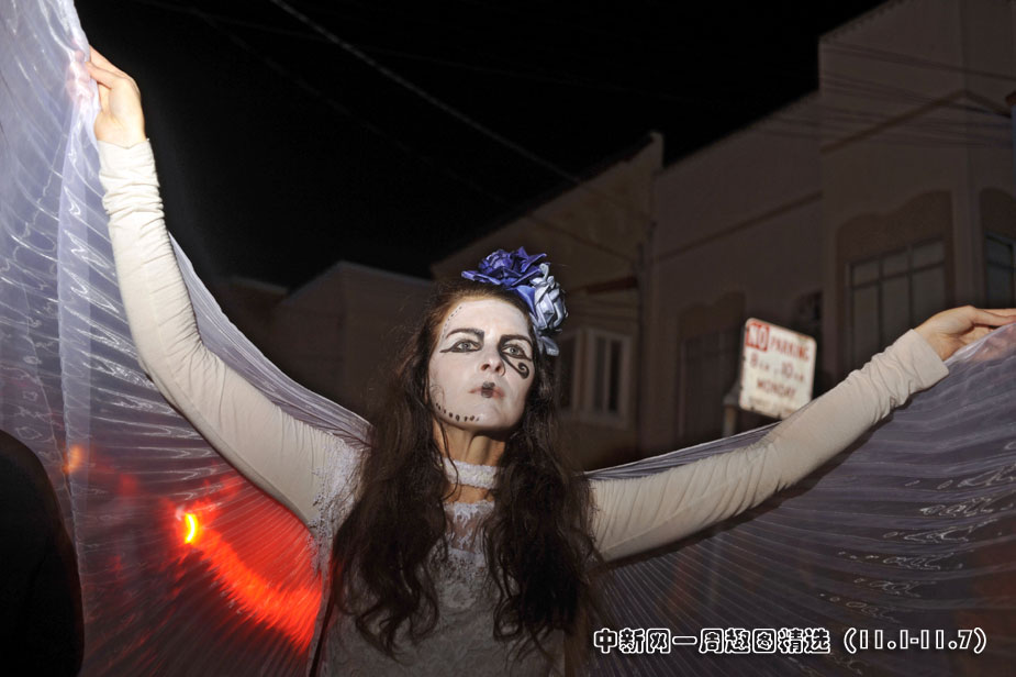 11月2日,美國舊金山居民扮成鬼怪模樣慶祝“亡靈節”。>>點擊觀看詳細內容