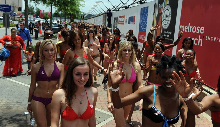 11月7日,南非的約翰內(nèi)斯堡正值夏天,將近300位身穿比基尼泳裝的女郎齊聚游行。希望借此打破最大規(guī)模比基尼游行吉尼斯紀錄。