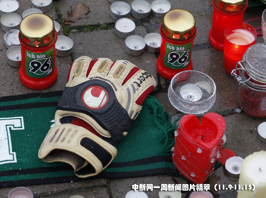 11日(周三),德國(guó)球迷紀(jì)念10日與火車相撞自殺身亡的德國(guó)男足門(mén)將恩克。圖片來(lái)源:中國(guó)新聞網(wǎng)