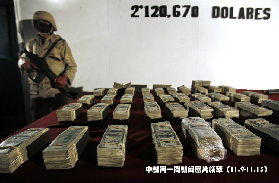 12日(周四),墨西哥軍方展示繳獲的贓款。圖片來源:中國新聞網