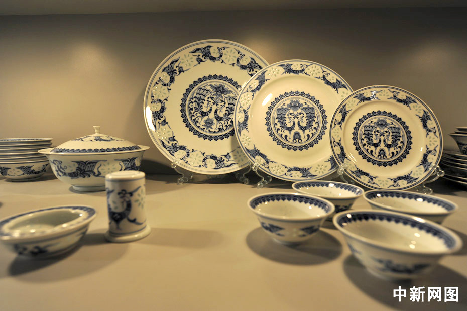 圖為現(xiàn)場(chǎng)展示的景德鎮(zhèn)精品陶瓷作品。中新網(wǎng)記者 金碩 攝
