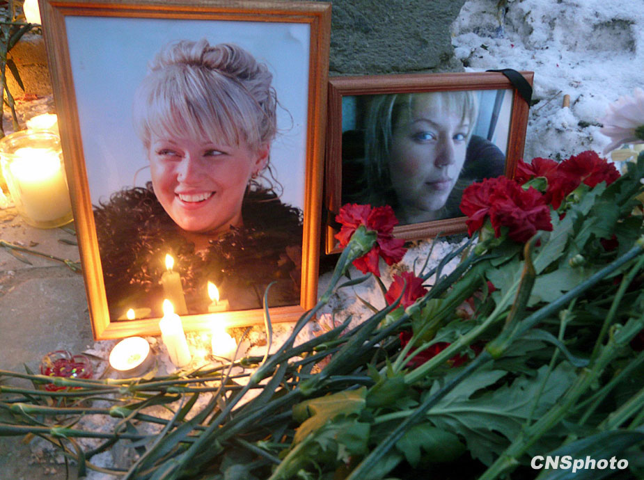 十二月六日,在俄羅斯彼爾姆市夜總會火災事故現(xiàn)場,首次出現(xiàn)了遇難者的遺像。中新社發(fā) 田冰 攝