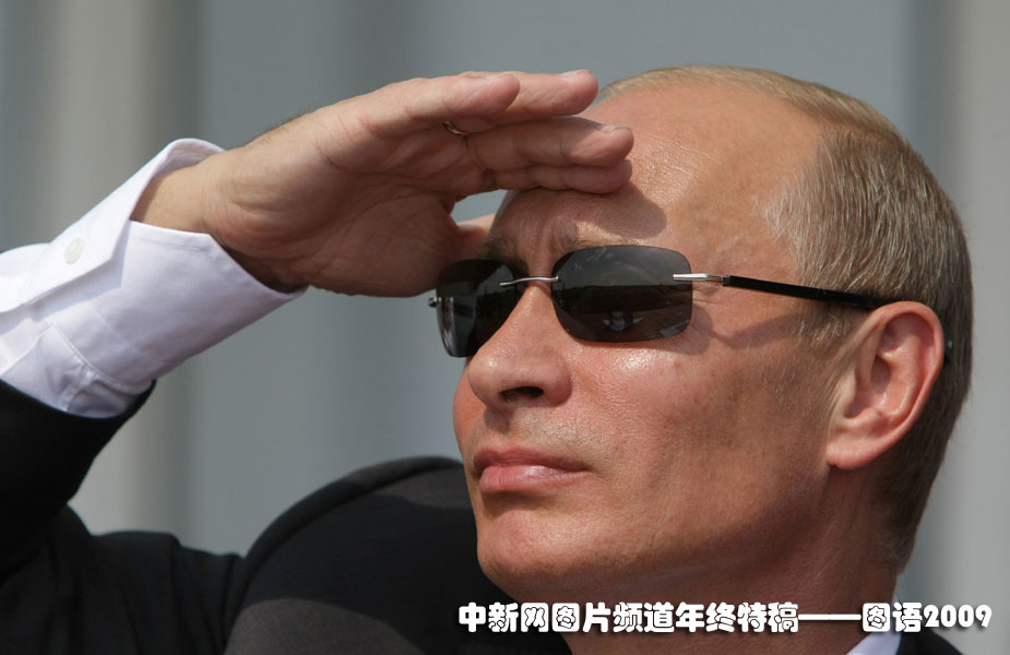 酷哥普京:2009年8月18日俄羅斯總理普京在莫斯科國際航空航天飛行展看飛行表演。