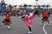 12月12日,秘魯印第安婦女在利馬國家體育場外舉辦了一場特別的足球賽,所有的球員均身著傳統(tǒng)服飾光腳上陣妙趣橫生。圖片來源:中國新聞網(wǎng)