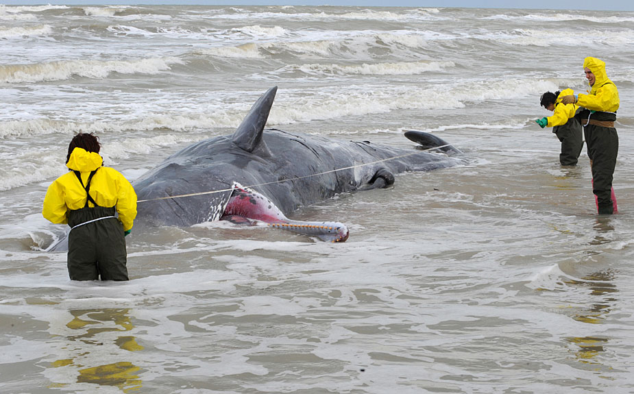 一群抹香鯨12月12日在意大利南部海灘擱淺,其中至少5頭已經(jīng)死亡。據(jù)稱,這群抹香鯨共有9頭,其中有2頭經(jīng)過救援已成功游回大海,目前相關(guān)人員對另外2頭正在進(jìn)行救援。圖片來源:中國新聞網(wǎng)