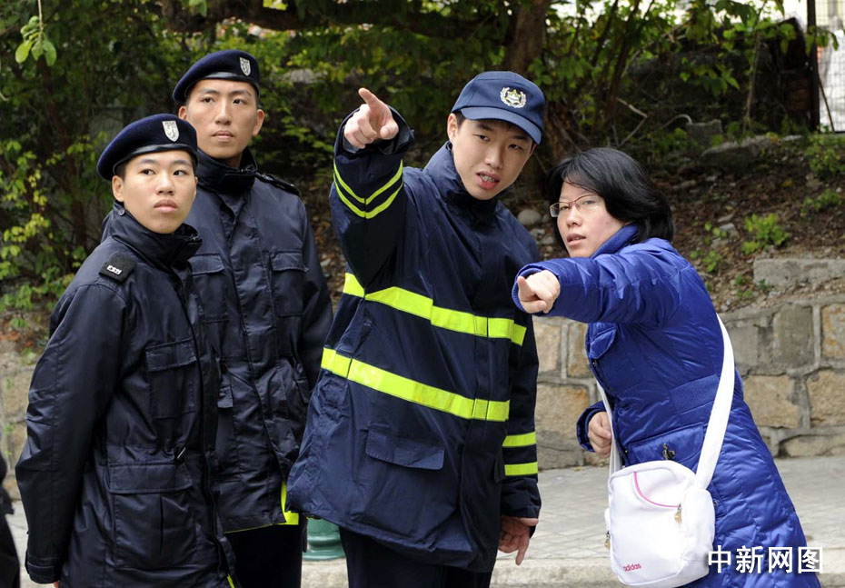 澳門凼仔警察悉心為民眾答疑。中新社記者 廖攀 攝