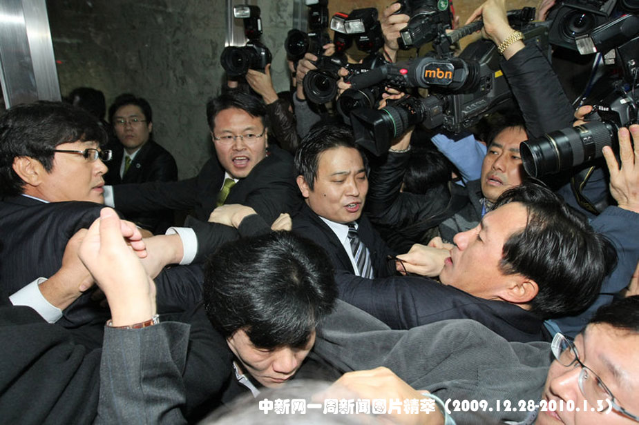 周四(31日),韓國大國家黨當日決定在國會245室進行預(yù)決委審議之后,民主黨議員趕往現(xiàn)場,與大國家黨議員發(fā)生了肢體沖突。圖片來源:中國新聞網(wǎng)