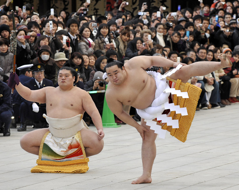 日本舉行相撲表演迎新年活動(dòng)