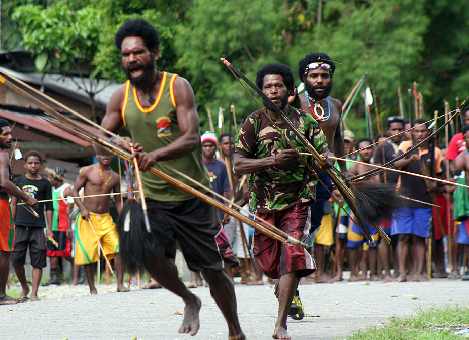 1月6日,印尼巴布省的兩個村落因債務問題引發了武裝爭斗,雙方手持弓箭等原始武器進行了一場原始的戰爭。目前,這場沖突已經造成多人傷亡。圖片來源:中國新聞網