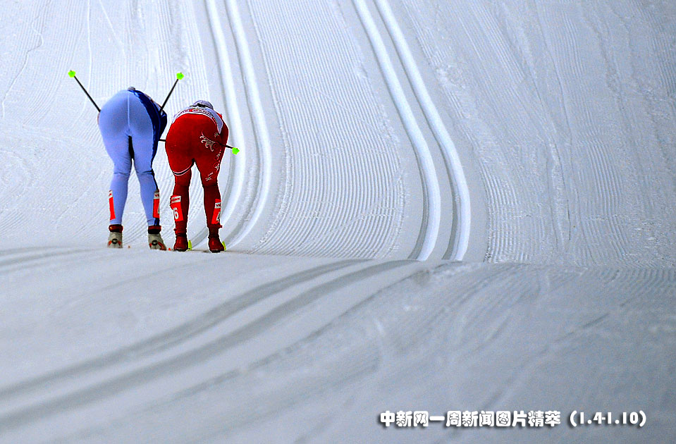 1月7日(周四),運動員們在意大利托布萊徹舉行的FIS世界杯滑雪賽女子比賽中參賽。波蘭選手科瓦爾齊克(Justyna Kowalczyk)獲得冠軍。圖片來源:中國新聞網(wǎng)