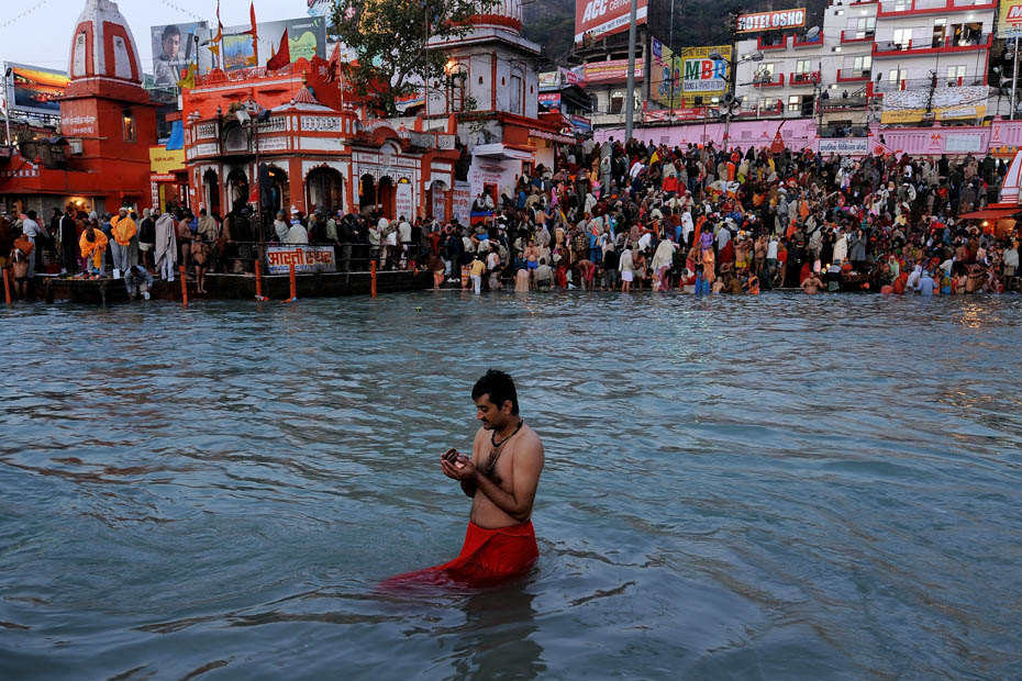 1月14日,數(shù)千名印度教信徒前往恒河參加世界上最大的宗教集會大壺節(jié),并在印度圣河——恒河進行了沐浴儀式。圖片來源:中國新聞網