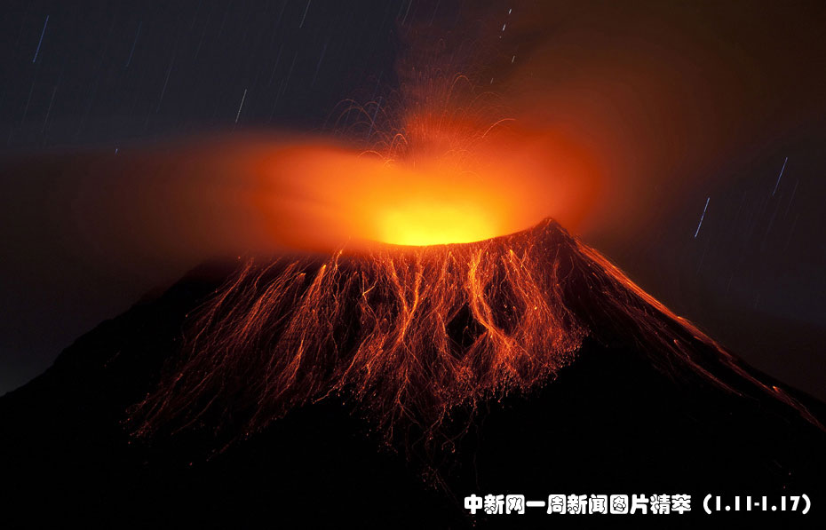 1月11日(周一),在厄瓜多爾首都基多附近,通古拉瓦火山噴發(fā)出巖漿和火山灰。圖片來(lái)源:中國(guó)新聞網(wǎng)