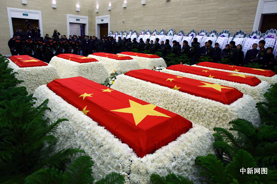 海地地震遇難中國維和警察遺體告別儀式1月20日上午9時在北京八寶山殯儀館大禮堂舉行。圖片來源:中國新聞網