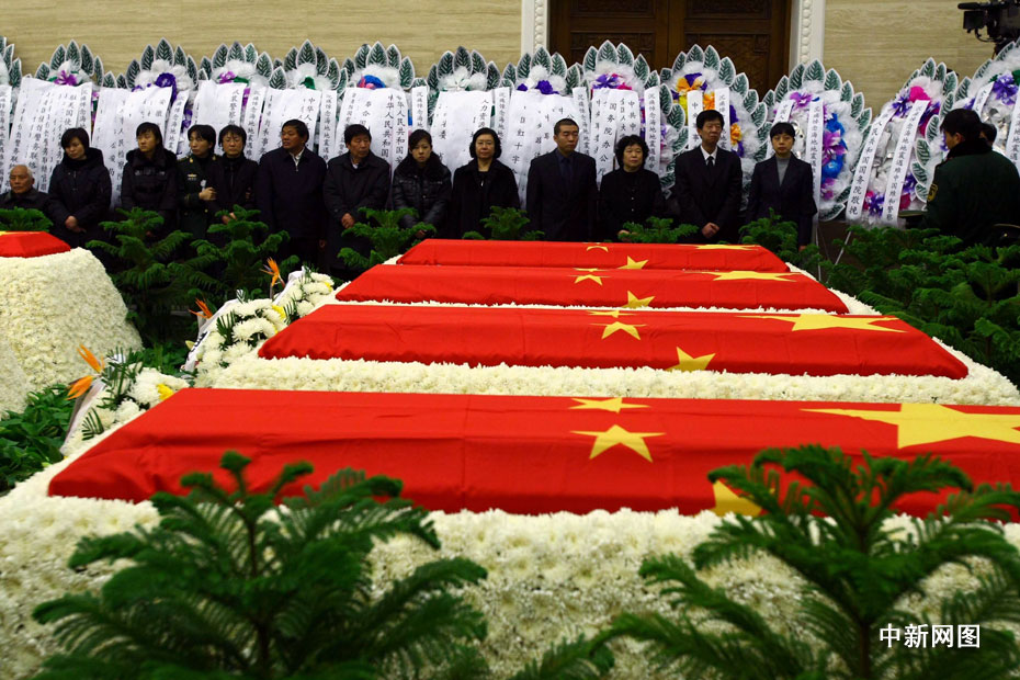 海地地震遇難中國維和警察遺體告別儀式1月20日上午9時在北京八寶山殯儀館大禮堂舉行。圖片來源:中國新聞網